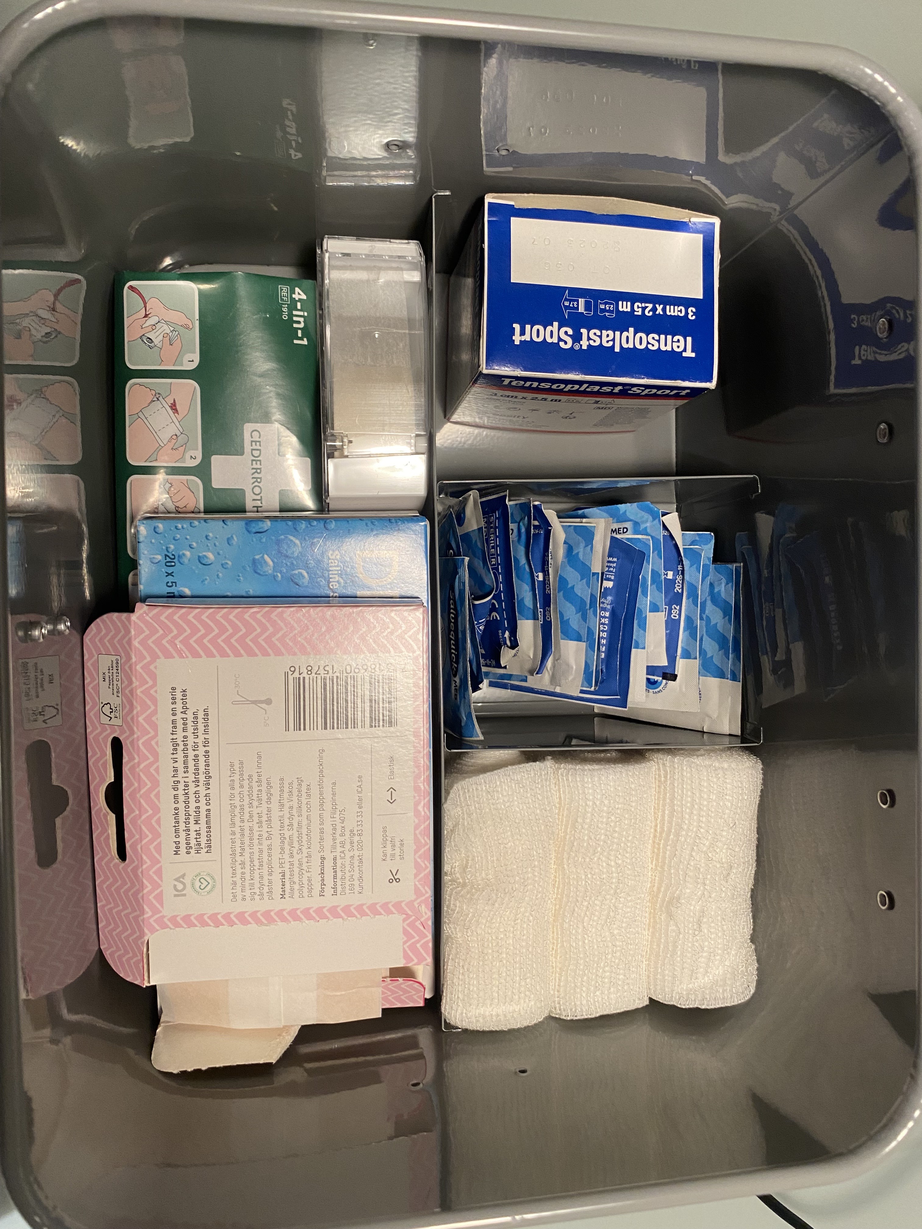 Det är vanligt att förbrukningsmaterial som plåster, kompresser, sårtvätt eller ögonskölj används vid mindre incidenter utan att påfyllning sker direkt efteråt. Eftersom dessa produkter ofta förvaras i gemensamma utrymmen och används spontant vid behov, finns det en risk att de tar slut utan att någon noterar det. Särskilt om det inte finns en tydlig rutin för kontroll och uppföljning.